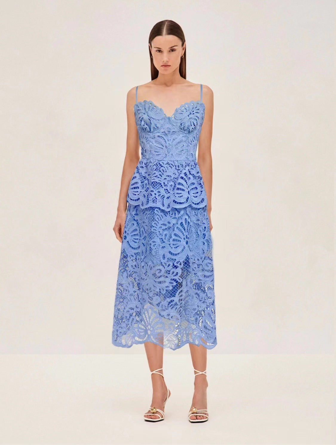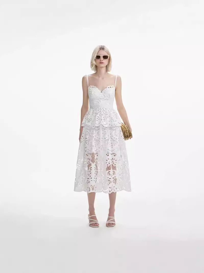 Niche 2024 Summer New Holiday Wind Sling V-Neck Embroidered Embroidery Long Dress Woman