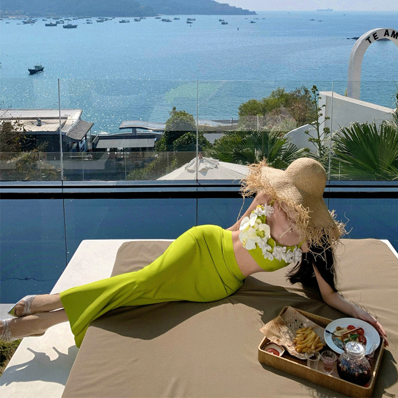 Niche Design Three-Dimensional Flower Sexy Sling Tset Tsets Open Forked Bag Hip Skirt Holiday Two-Piece Suit Woman