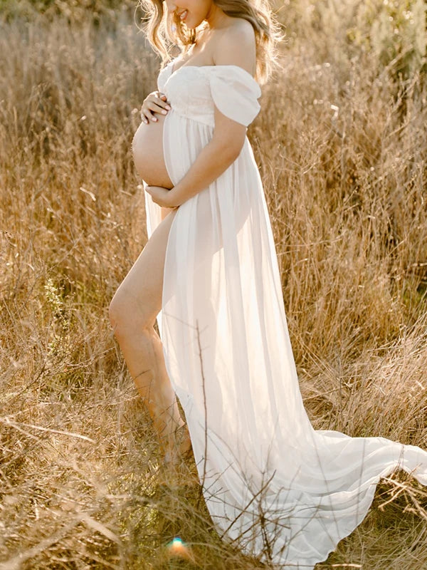 Off-shoulder Grenadine Cross Chest Maternity Dresses For Photoshoot Maxi Dress Maternity