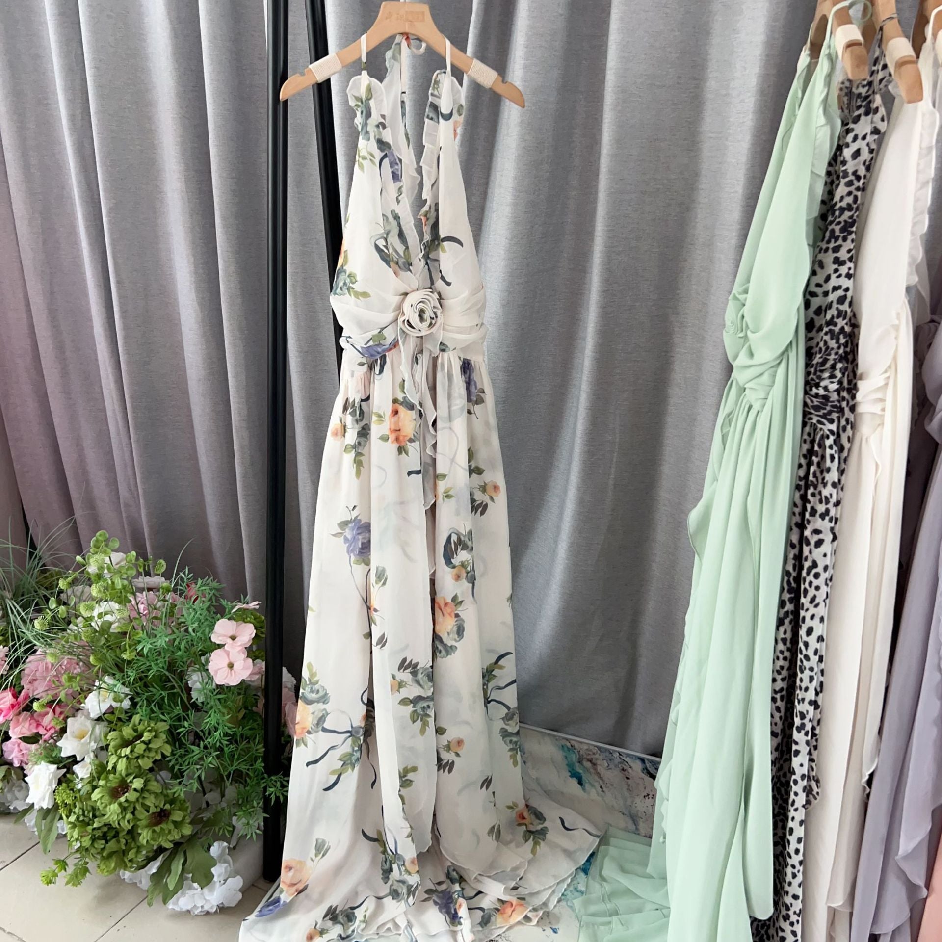 Oil/8 Colors 2025 Elegant Hanging Neck-Luck Holiday Flowers Unique Special Beach Dress
