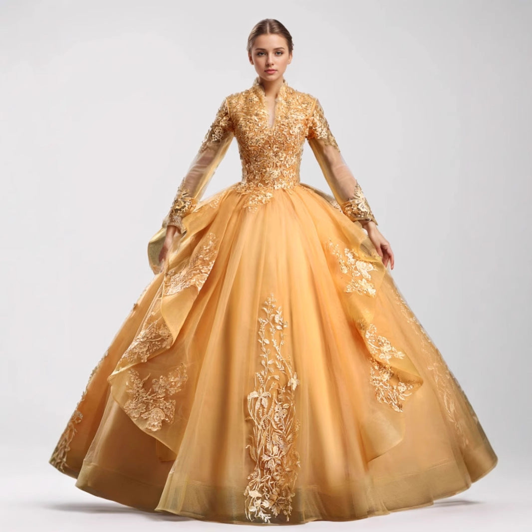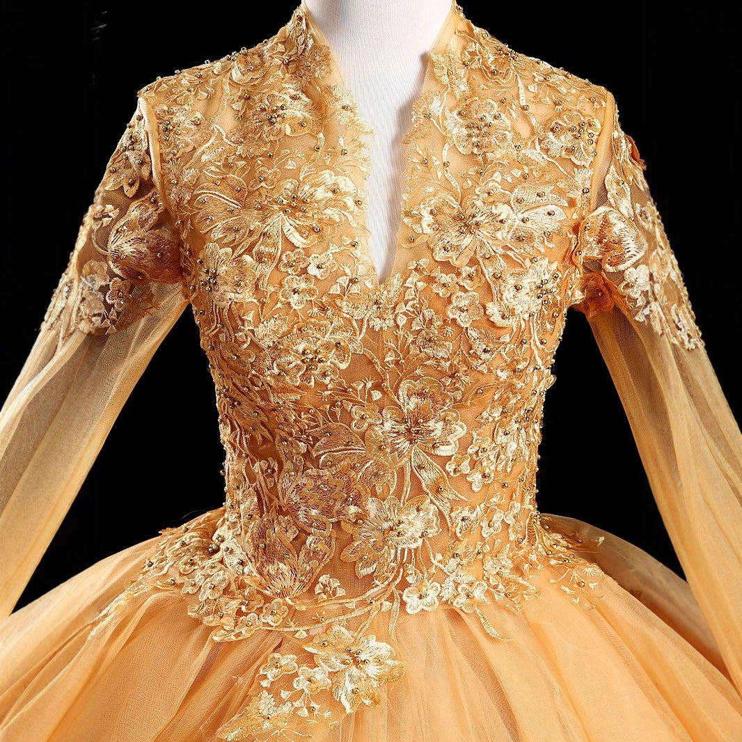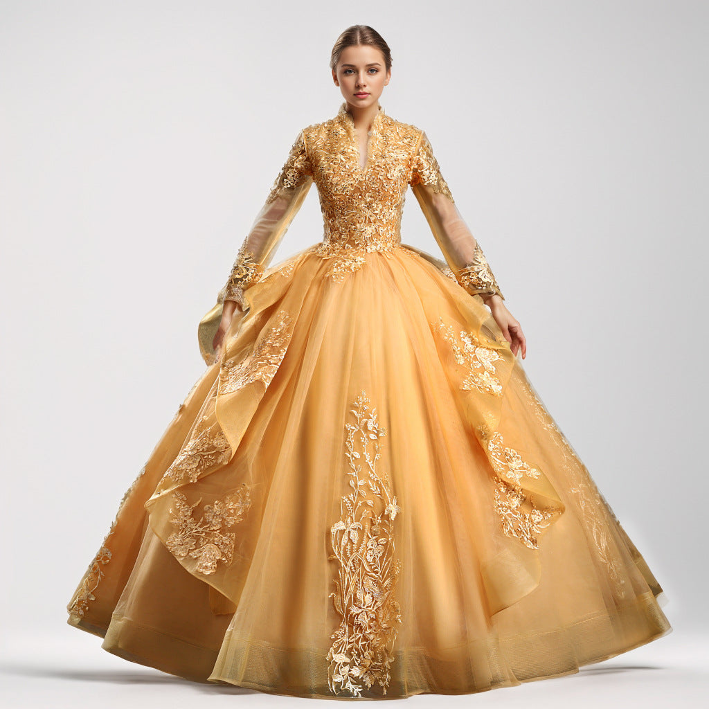 Performance Suit V-Neck 2025 New Color Yarn Vocal Art Canopy Skirt Host Dress Woman Retro