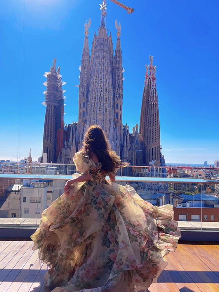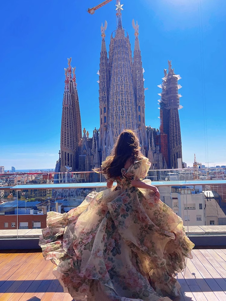 Princess Square Neckline Floral Green Long Ruffles Prom Dresses Birthday Dress SD578