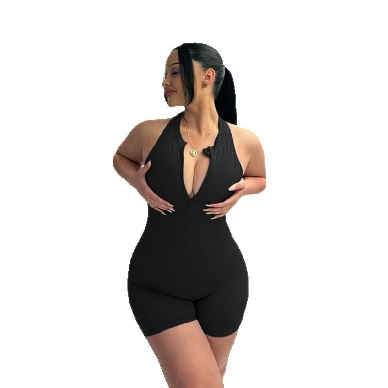 Quick Dry-In-Body Shorts Peach Hip Jumpsuit Hottie Hollow Tight Zipper Yoga Pants DJPT