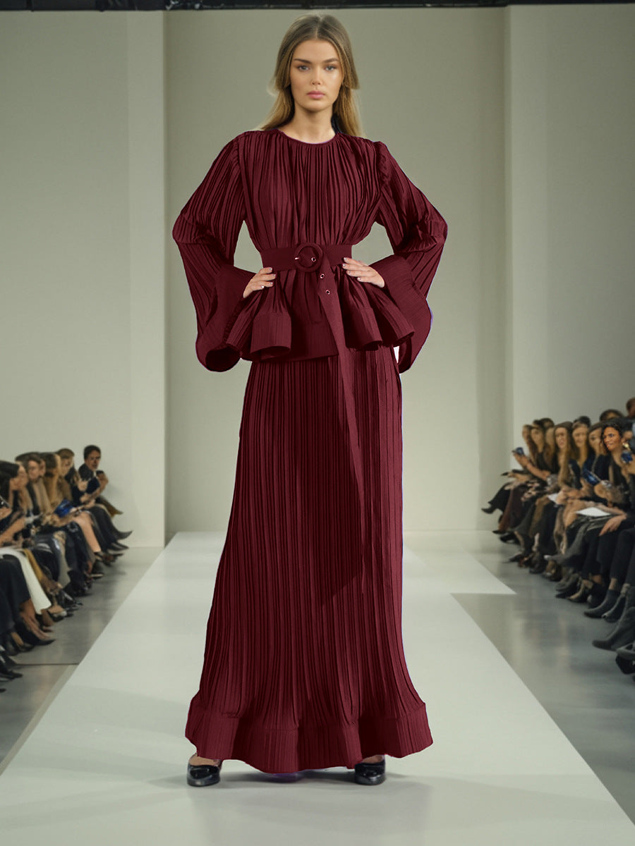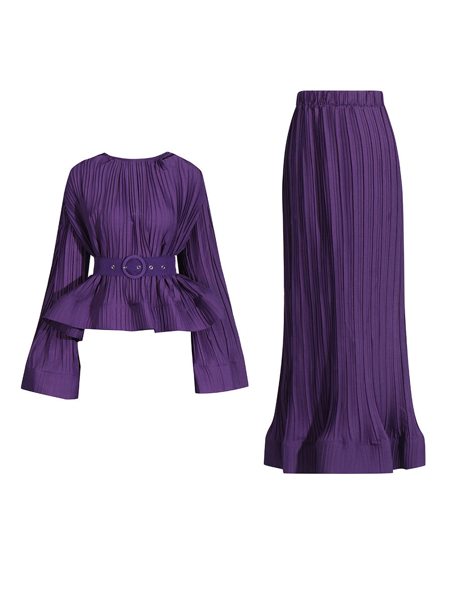 Retro High-End Two Sets Of 2025 Spring New Horn Lotus Side Top High Waist Half-Body Skirt Set