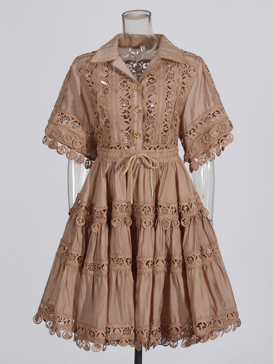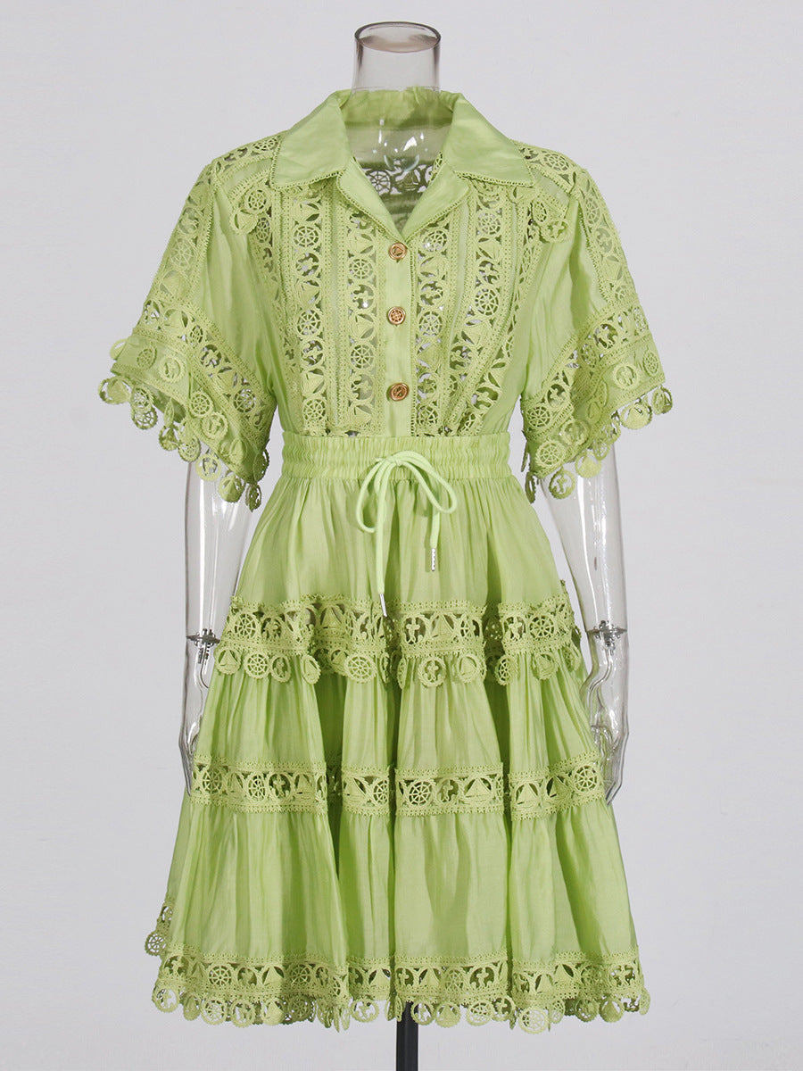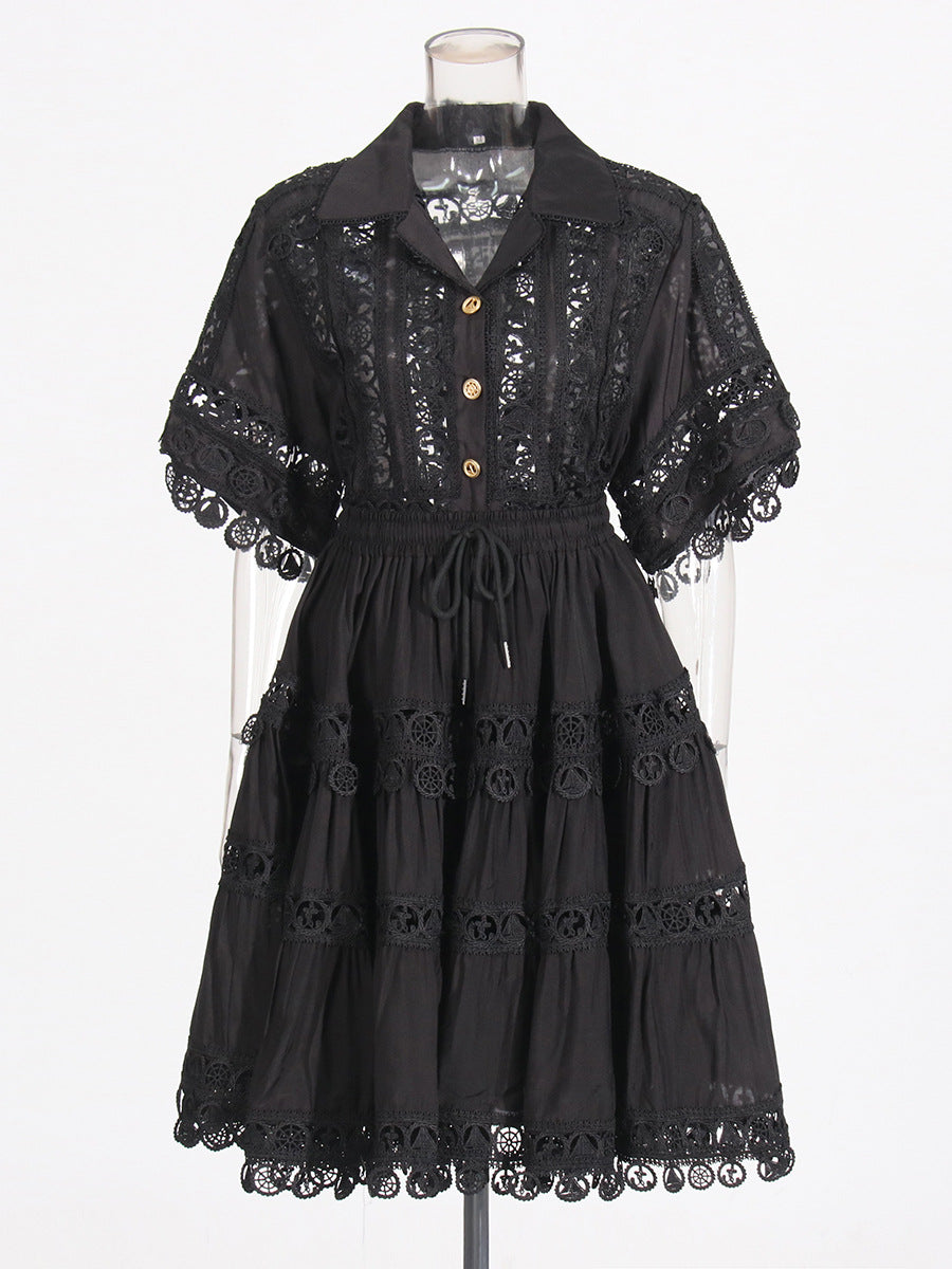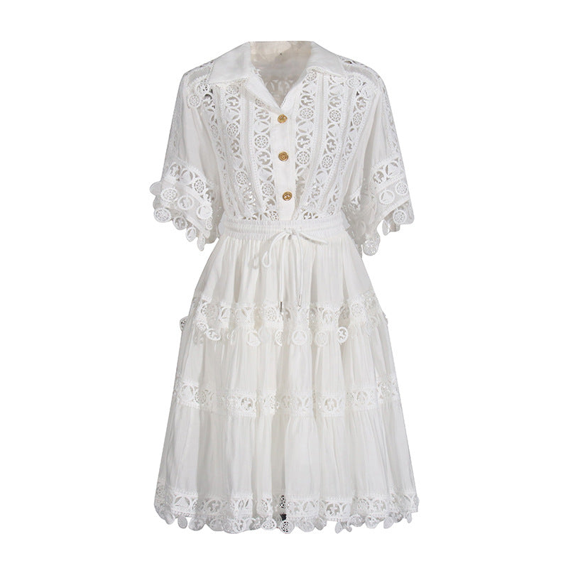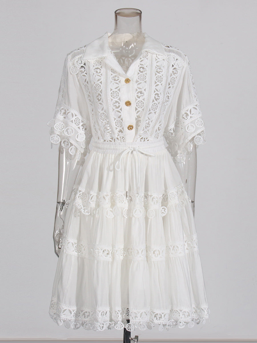 Romantic Style 2025 Summer New Collar Embroidered Lace Shirt With Elegant Half-Skirt Set