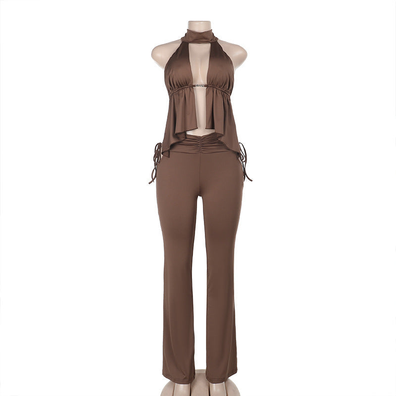 Sexy Hanging Neck Hollow Vest High Waist Straight Trousers New Hottie Set DJPT