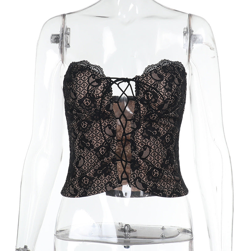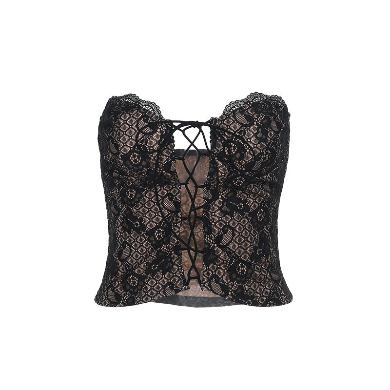Sexy Lace Hollow Strapped Thoracic Top 2025 Summer New Vest DJPT