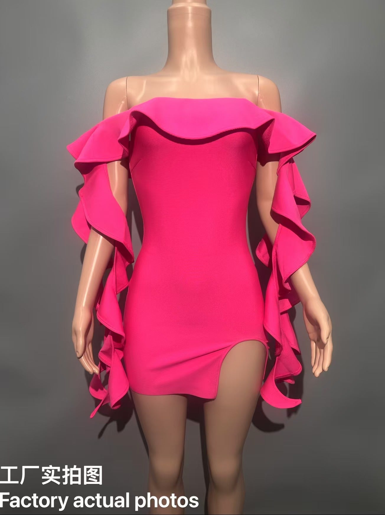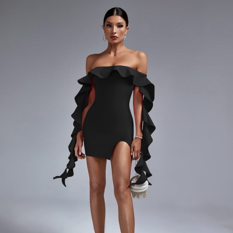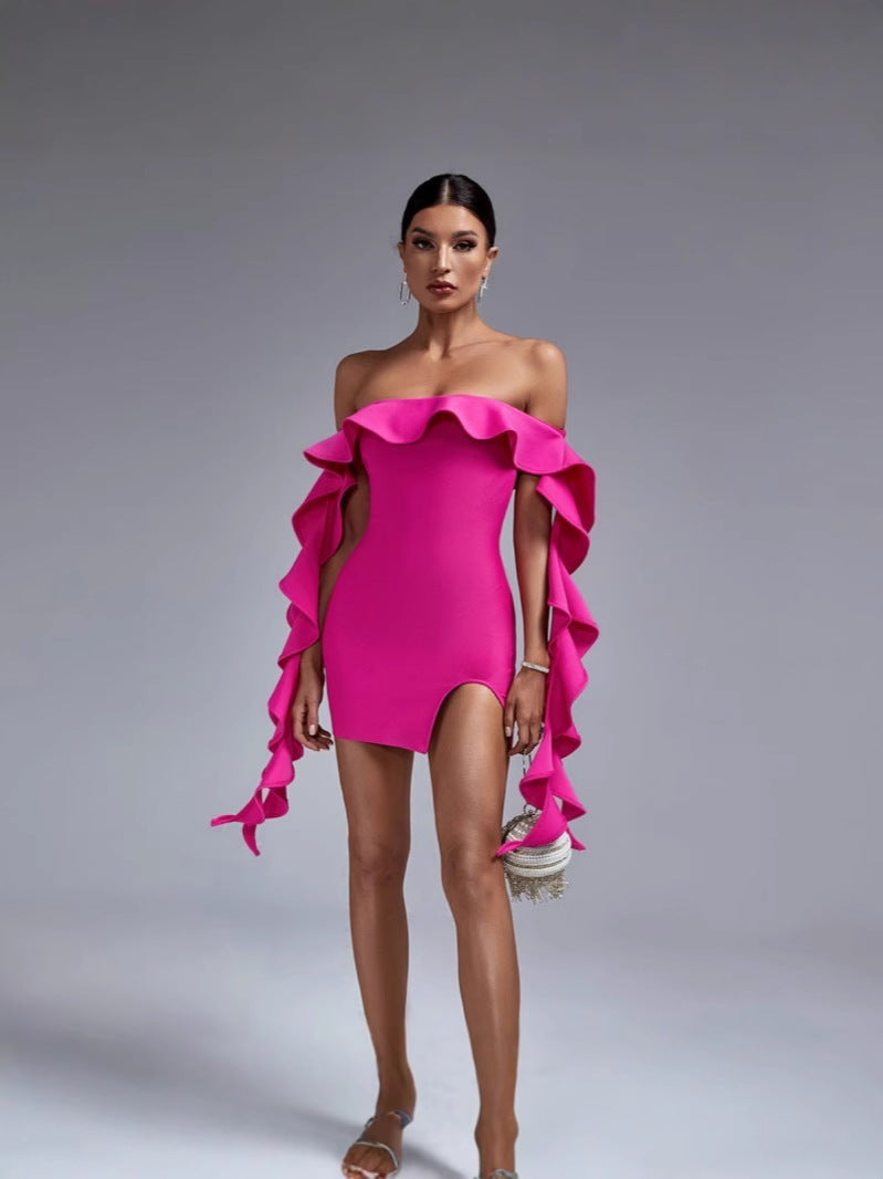 Sexy Shoulder Lotus Leaf Side With Chest Banded Dress Party Party Party Dress