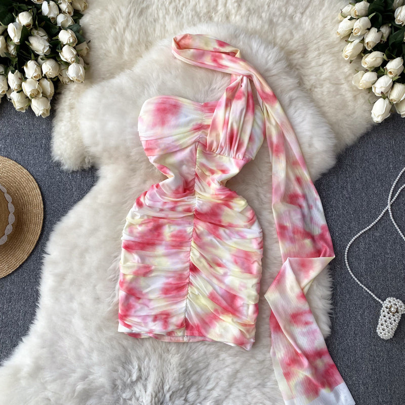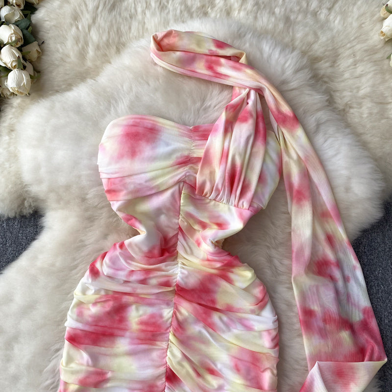 Sheath Strapless Pink Floral Holiday Dresses Short Length Women's Dress SD1276
