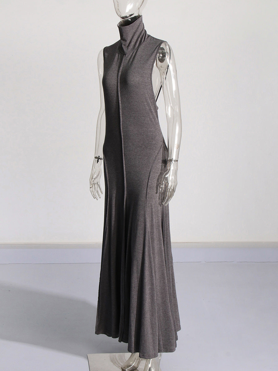 Sister Casual Dress Women's Dress 2025 Spring New Standing Sleeveless 100-Folded Knitting Dress