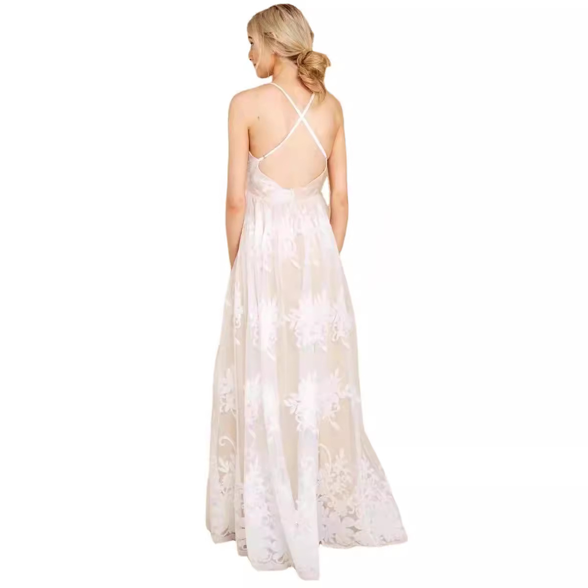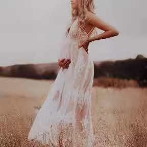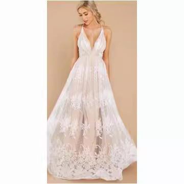 Sling With Deep V Sexy Mesh Embroidered Dress Maternity