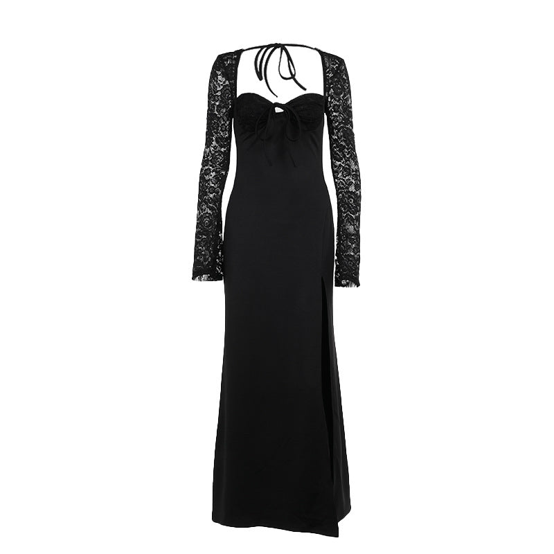 Small Sexy Lace Splicing Dress Dress Dress Woman Fashion Temperament Straight Fork Dress DJPT