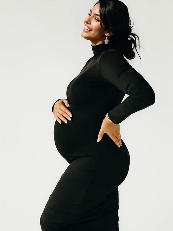 Solid Color High Neck Bodycon Mermaid Photoshoot Maternity Maxi Dress Maternity