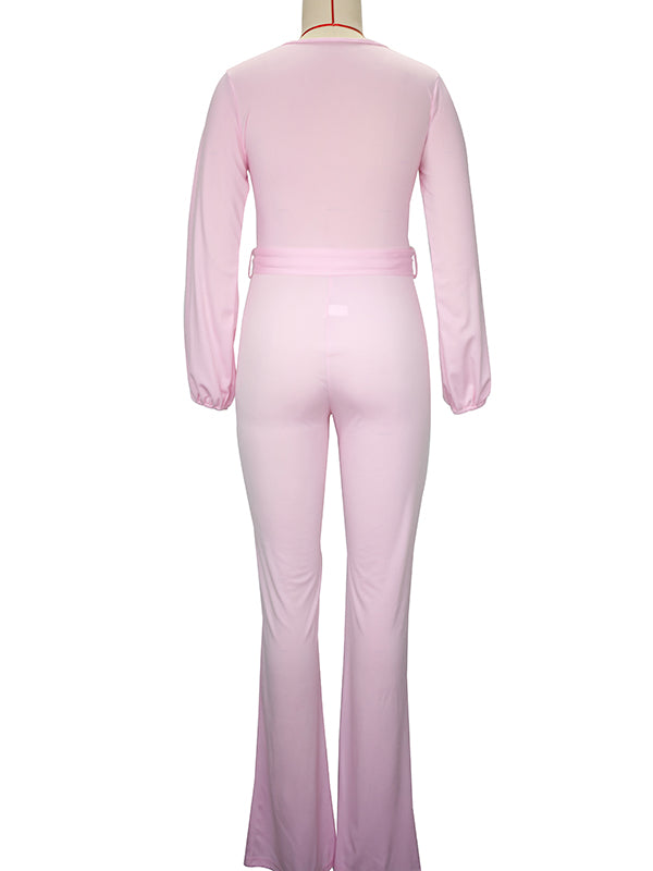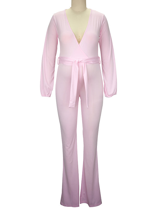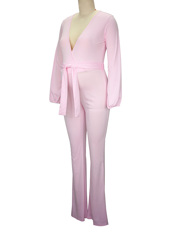 Solid Color Sashes High Waist V-Neck Long Sleeve Baby Shower Plus Size Maternity Jumpsuit Maternity