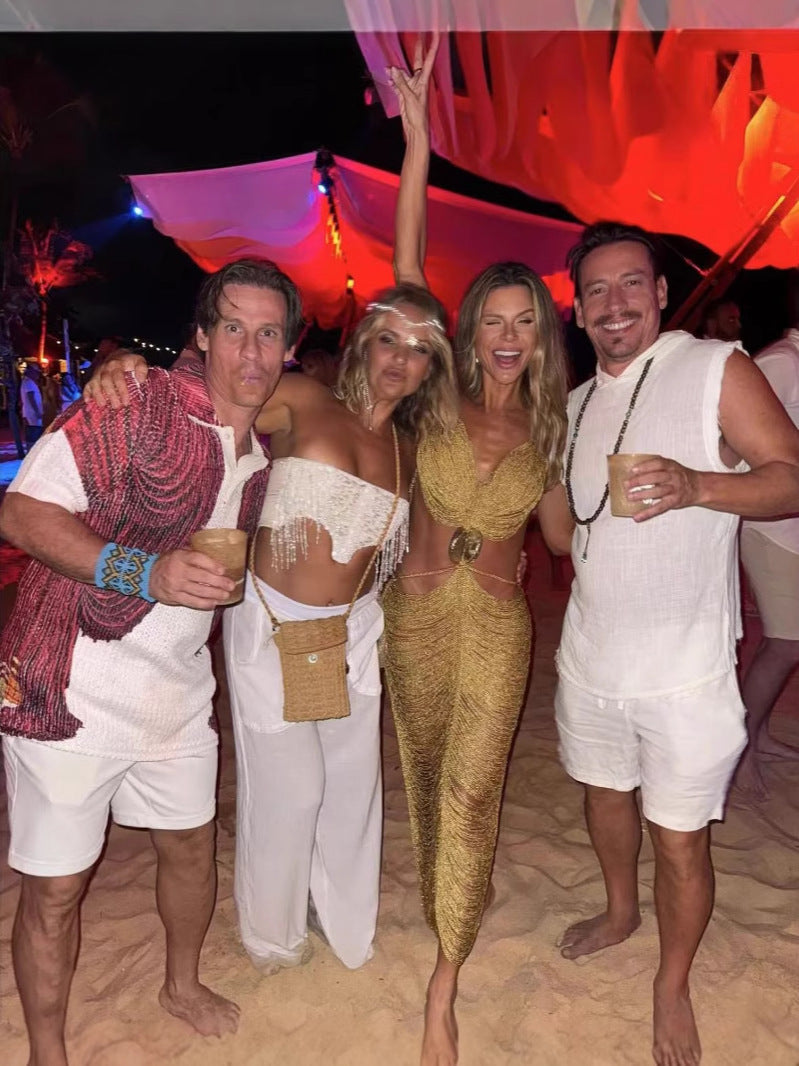 Spring And Summer Fashion Shell Esbead Hanging Neck Strap Sexy Body Butt Adjustable Long Skirt LX0135