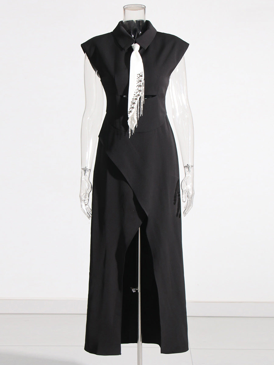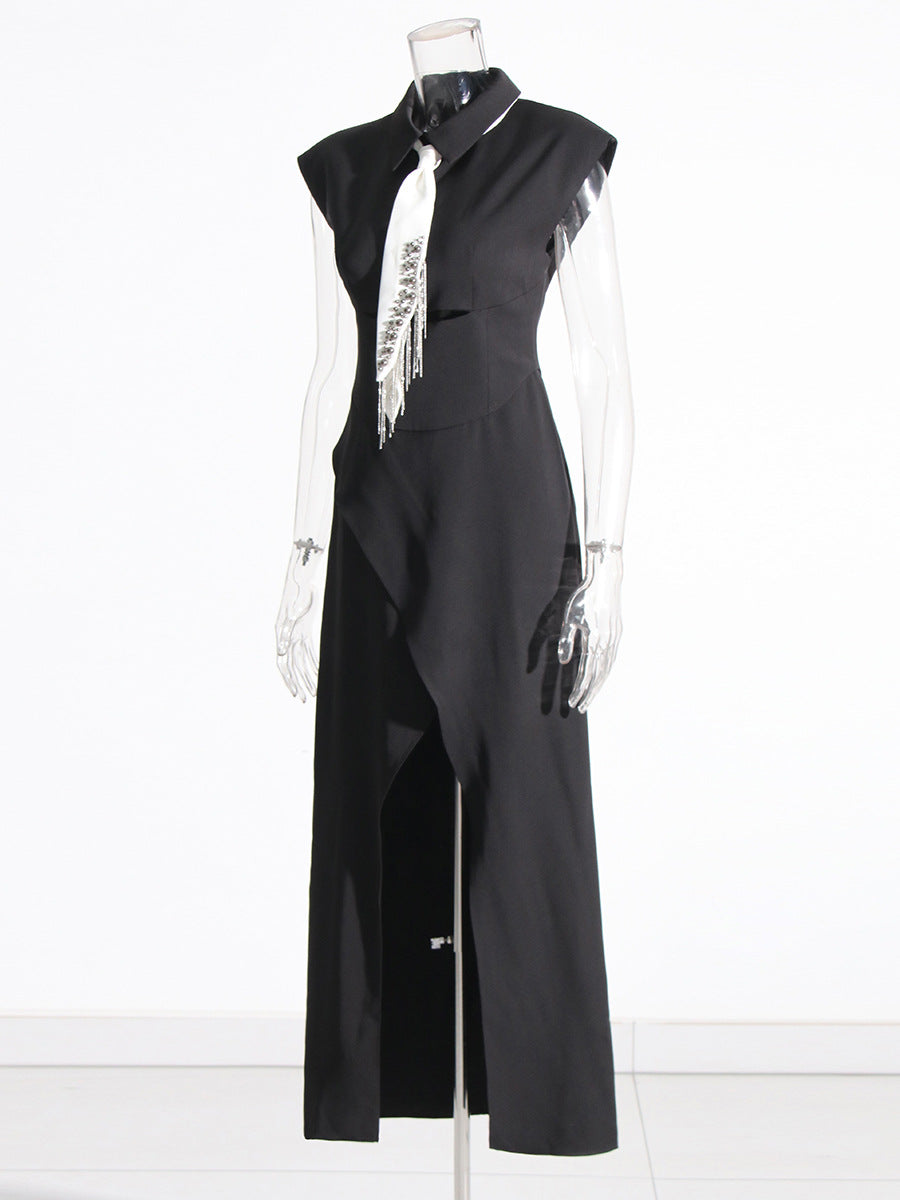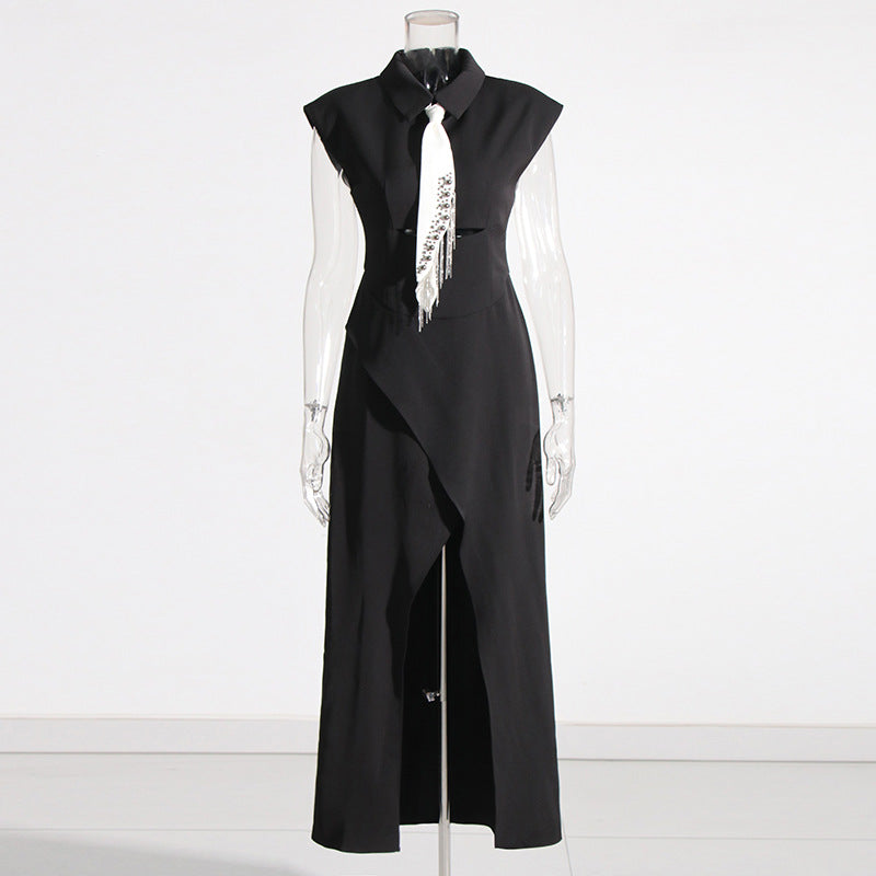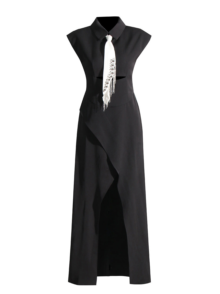 Street Style Shirt Dress 2025 Spring New Collar Heavy Industry Tie With Body-In-Body Temperament Dress Dress Woman