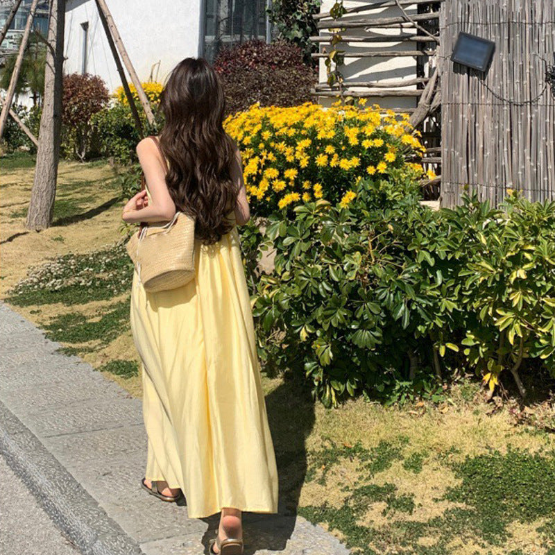 Style Yellow Sling Dress Women's Summer Seaside Wearing Skirt Loose Age Reduction A Skirt