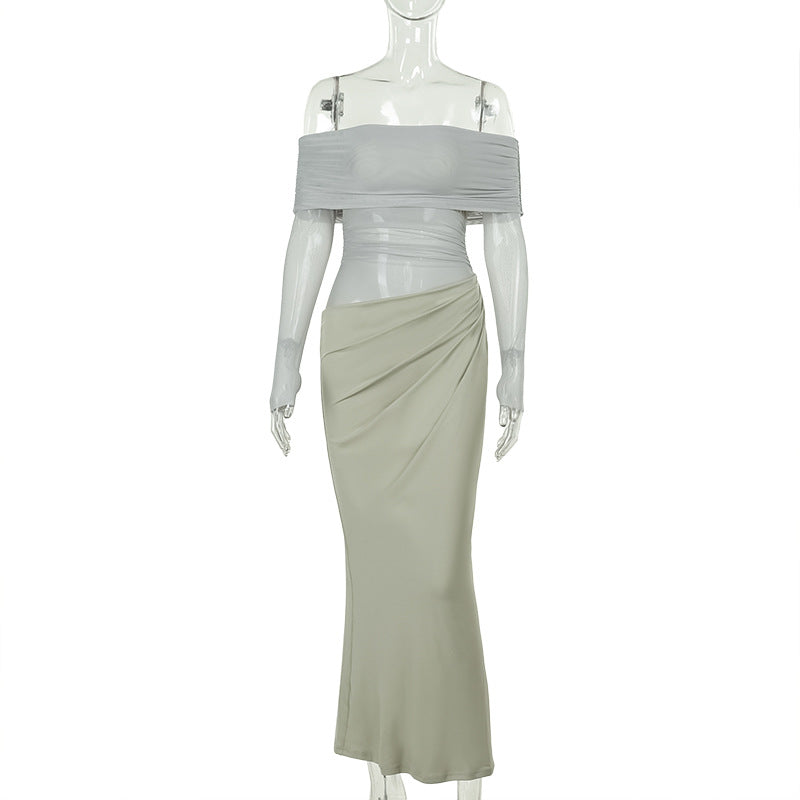 Summer 2025 New Long Dress Temperament Sexy Shoulder Mesh Yarn Hollow Dress Woman DJPT