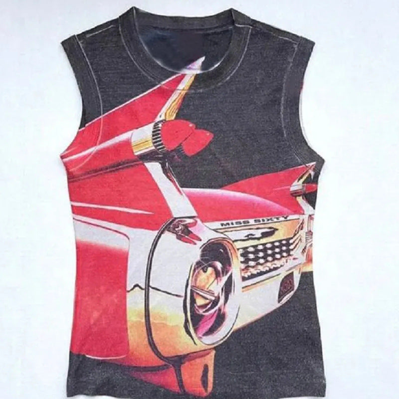 Summer Model Aircraft Printed Vest Sleeveless Coat Women's Top Vest Y2k Harajuku Top DJPT