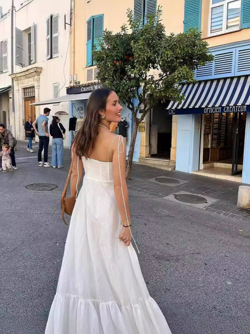 Summer New Fashion Stacked Solid Color Sexy Sling Dress