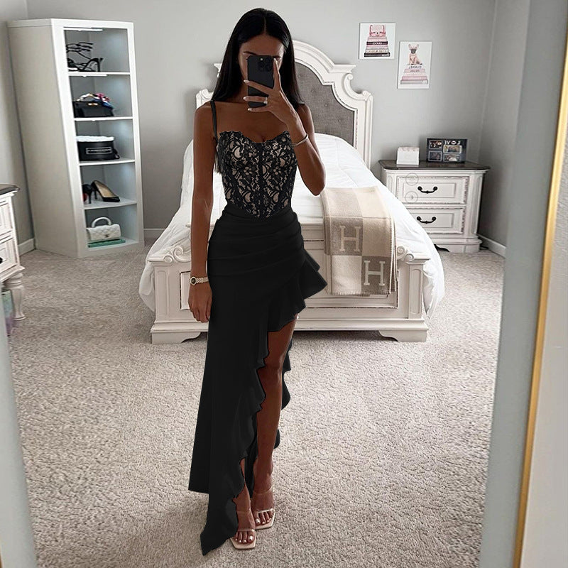 Summer New Temperament Sexy Temperament Renovated Wave Open-Dapelace Suspension Dress DJPT