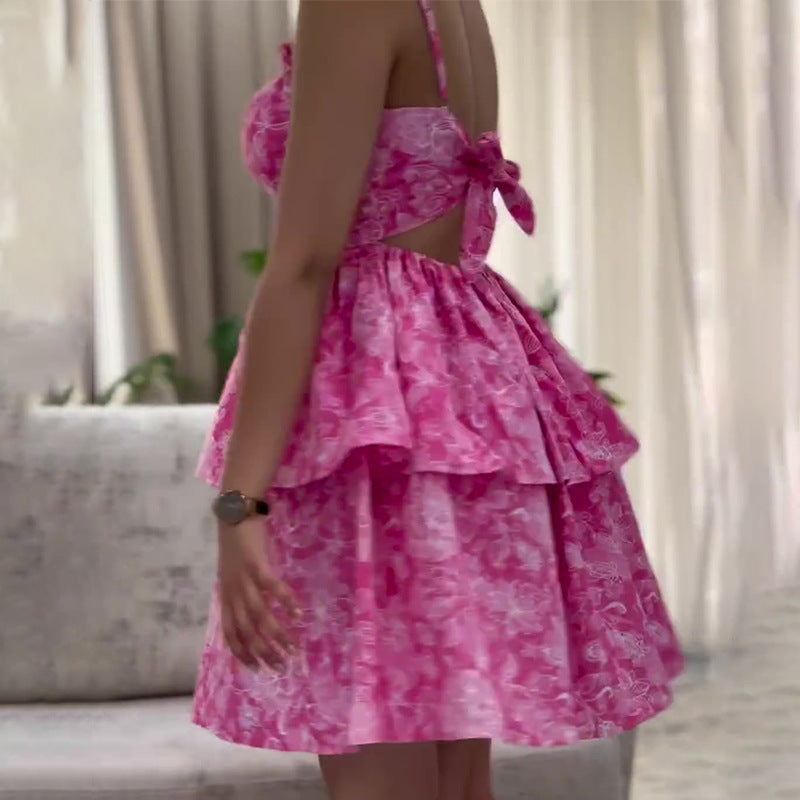 Summer New Women's Waist Sling Belts With Chest-Scarded Back Prints Thin Vacation Short