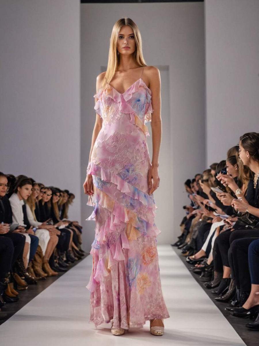 Suspension Dresses Spring 2025 New Fashion Pink-Print Leaf-Side Dress Woman