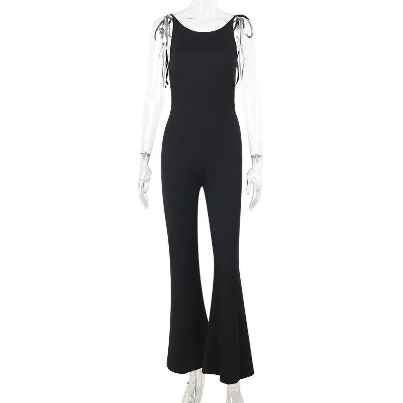 Suspension Striped Bareback Knitted Knitted Black Pickpoo Trousers Woman DJPT