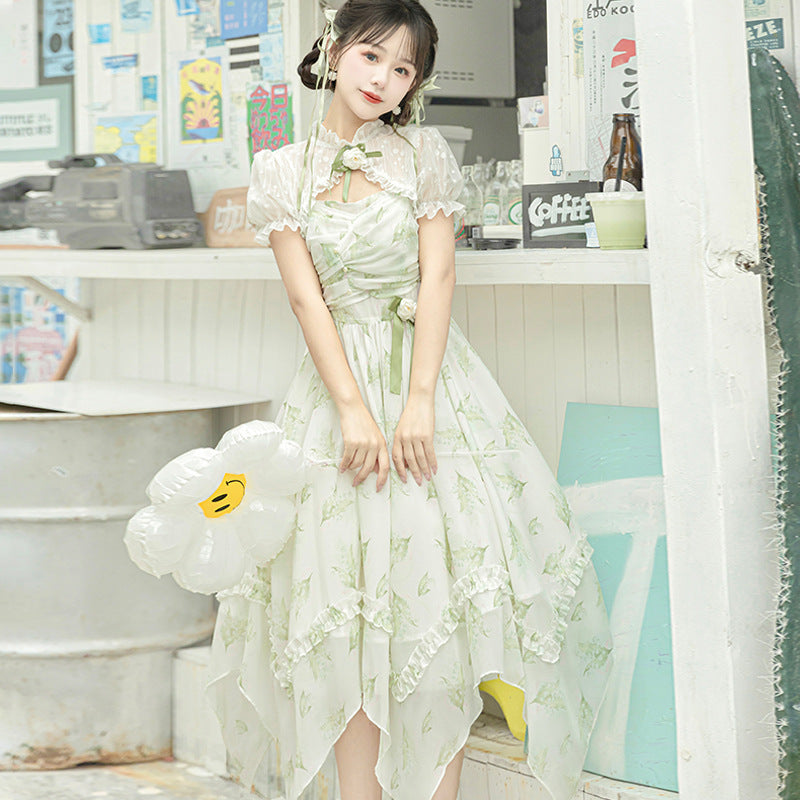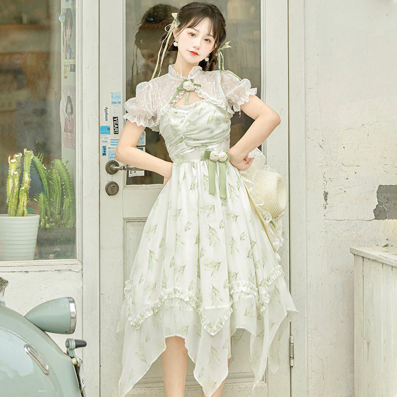 Suzuki Spring Lolita Dress Lolita Sleeve Shawl Sling Dress Set 6809