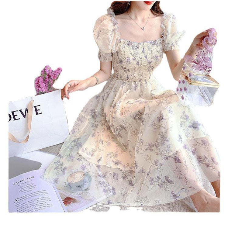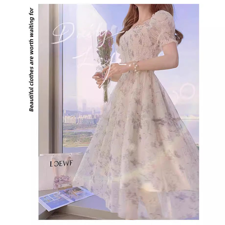 Tea Break French Ink Painting To Collect Thin Temperament Lady White Chiffon Dress Women's Clothing Mall The Same DJPT
