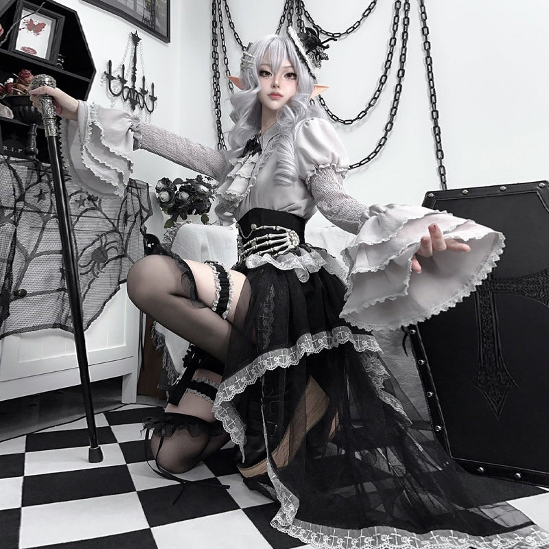 Teased Original Gray Fairy Tale Lolita Woman Lolita Hair Card Blouse Short Skirt Cute Set 6974