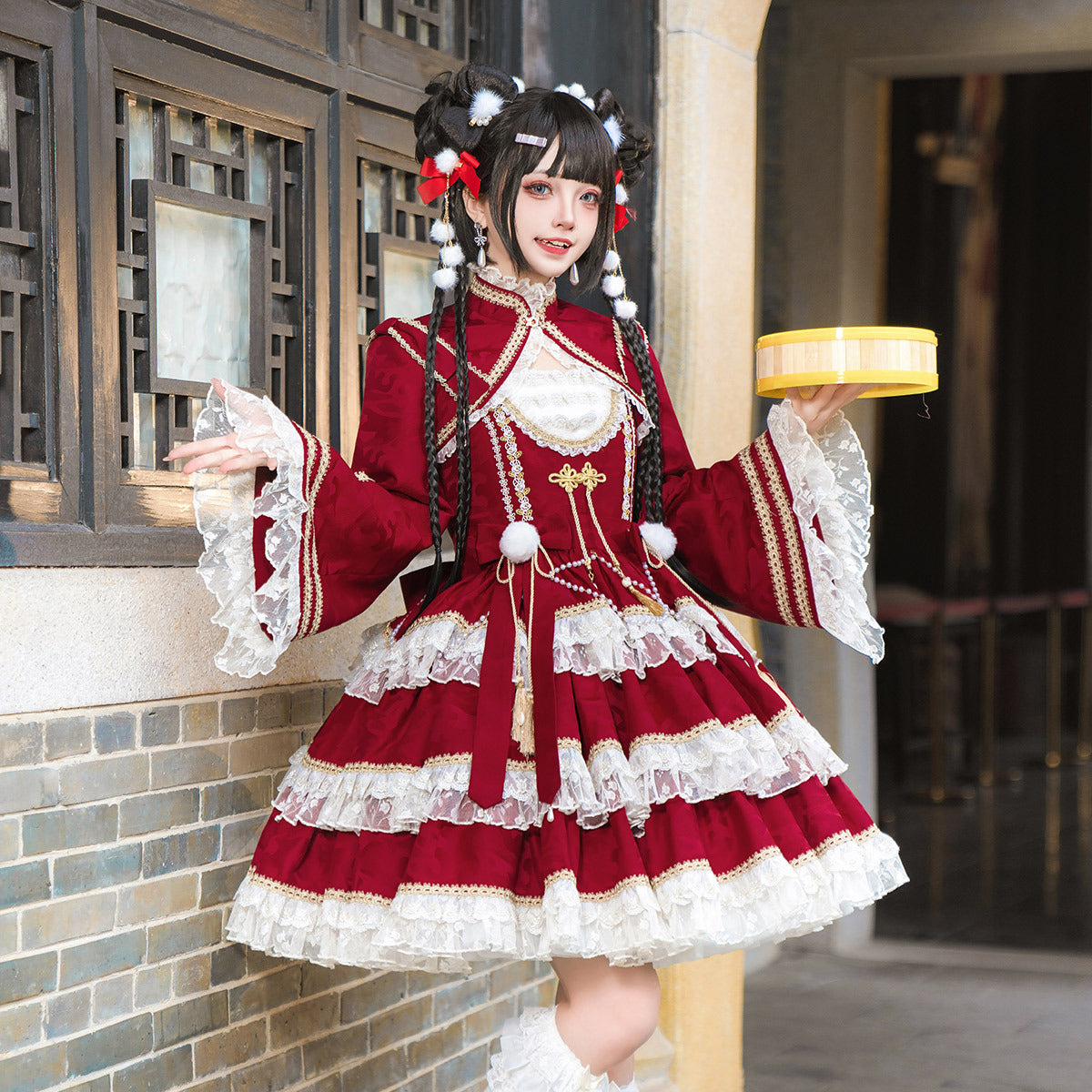 Teased Original Pyrotechnic Year Lolita Girl Lolita Blouse Sling Skirt Sweet Dress Set 6957