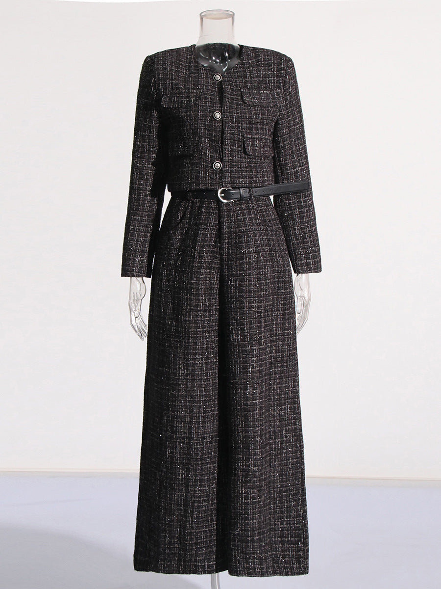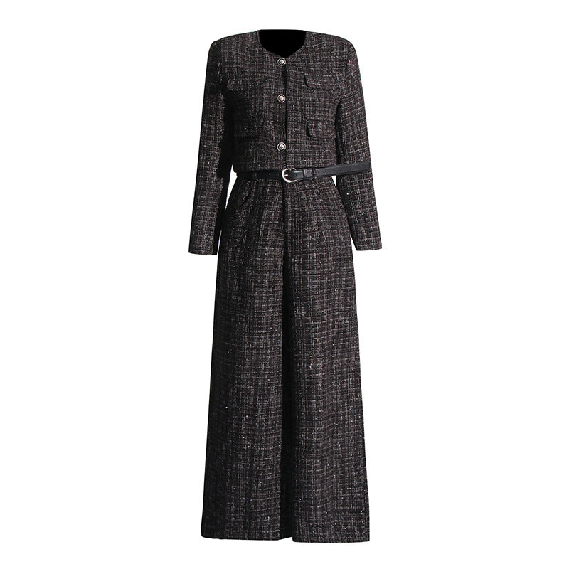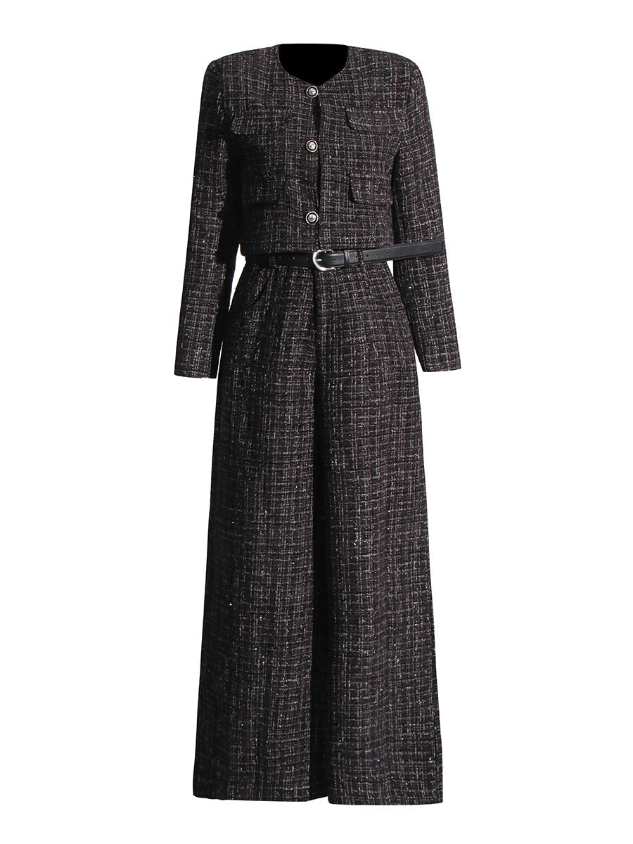 Temperament Commuting Style 2025 Summer New Fashion Small Fragrant Coat + Belt With Trousers Set