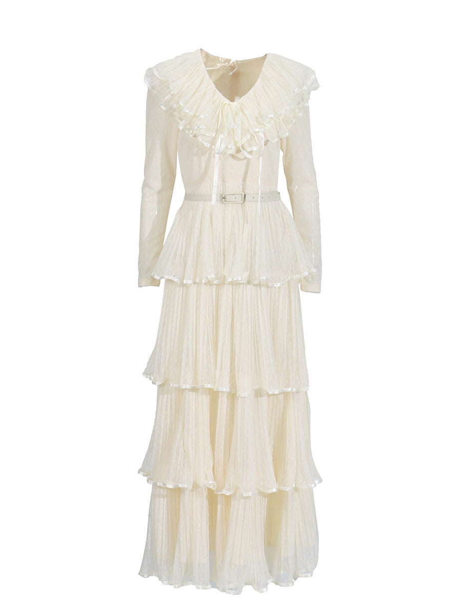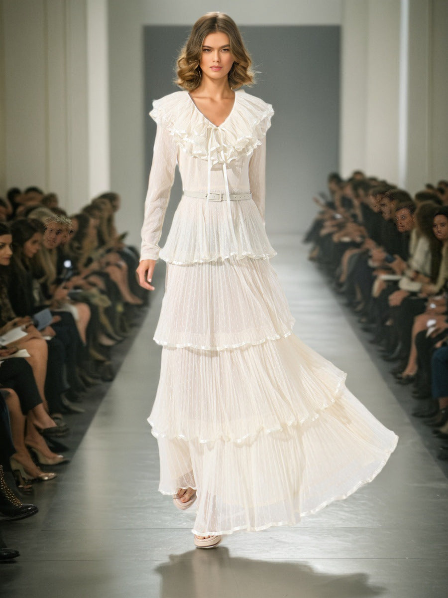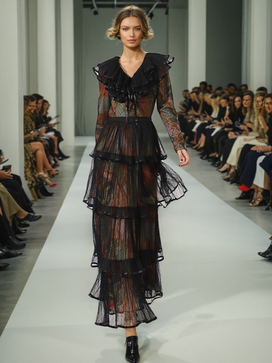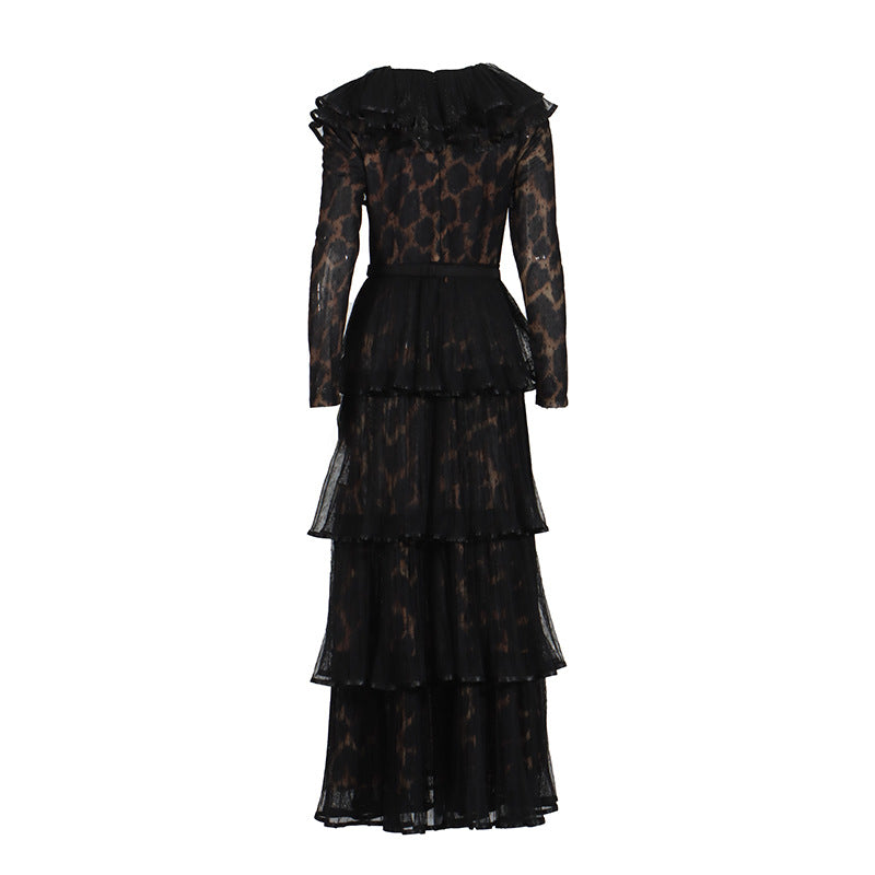 Temperament Elegant Wind Pressure Skirt 2025 Summer New V-Necked Leaf Side Leopard Print Long Dress Woman