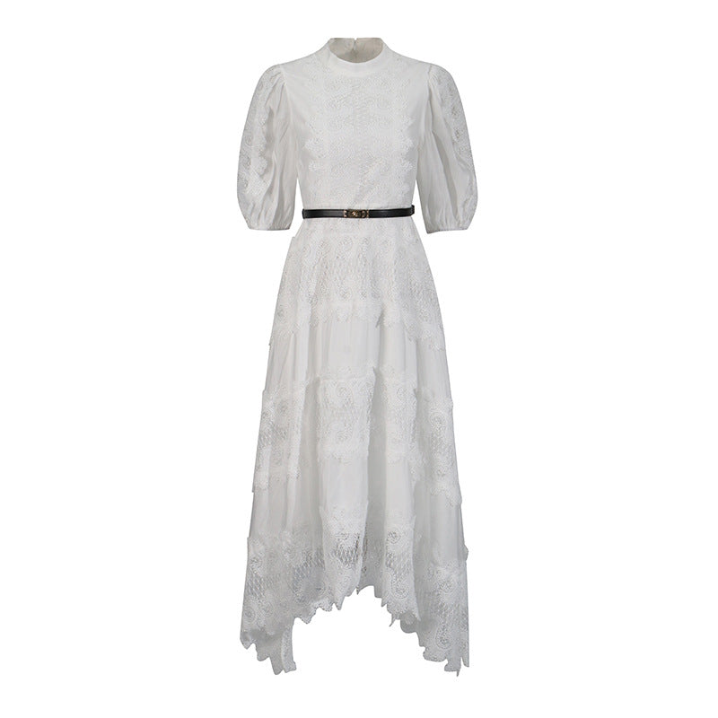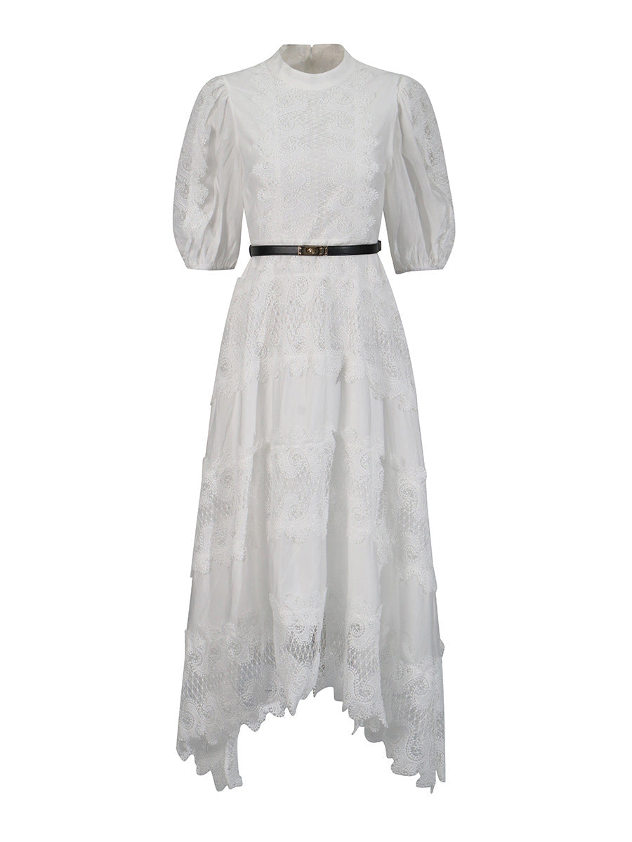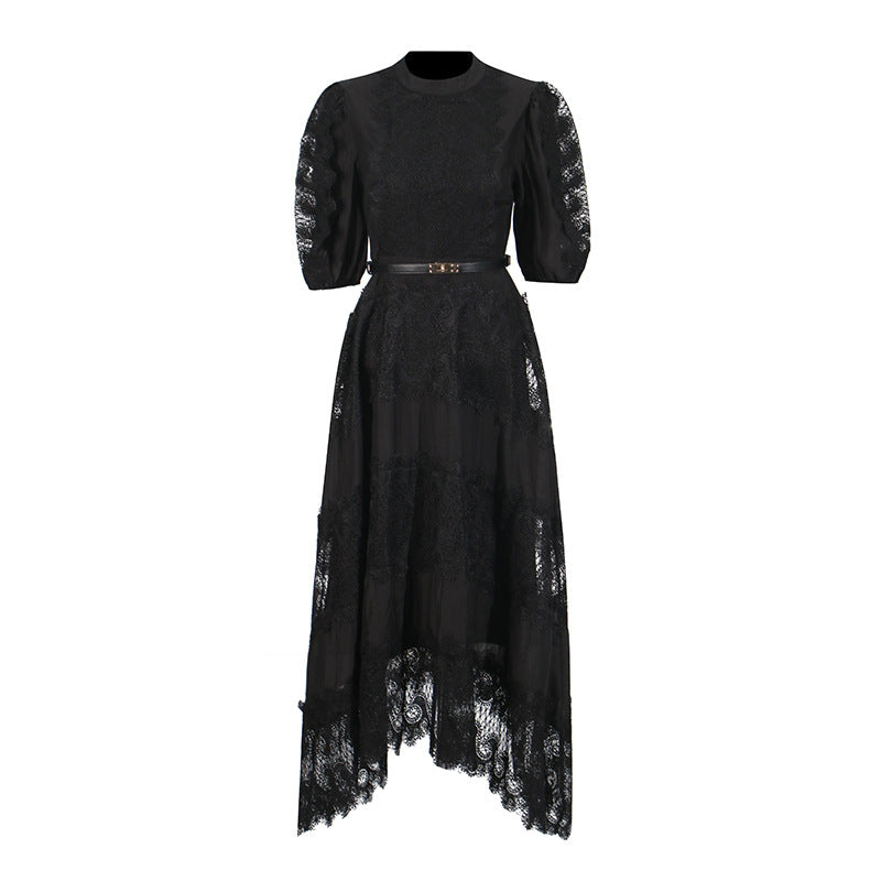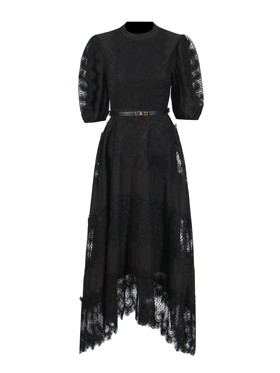 Temperament Fashion Elegant Style Dress 2025 Summer New Round Collar Bubble Sleeve Lace Waist Dress Dress Dress Dress