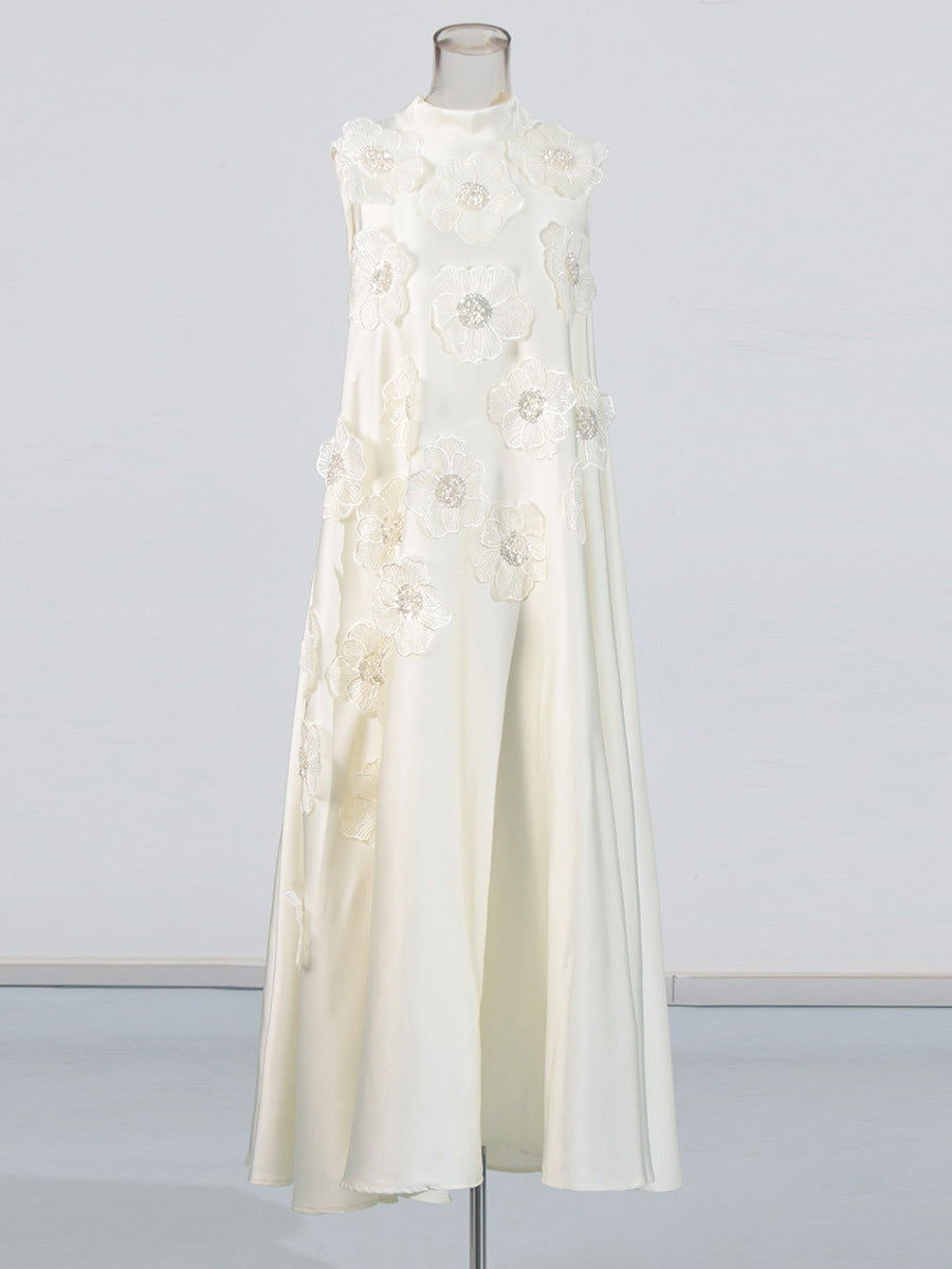 Temperament Fashion Geek Wind 2025 Spring New Heavy Industry Irregular Three-Dimensional Flowers Sleeveless Long Dress Woman