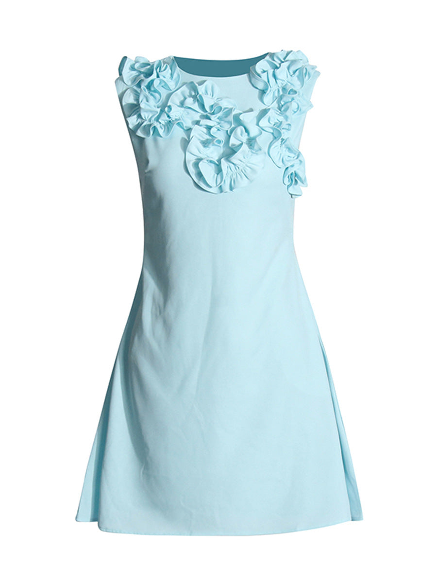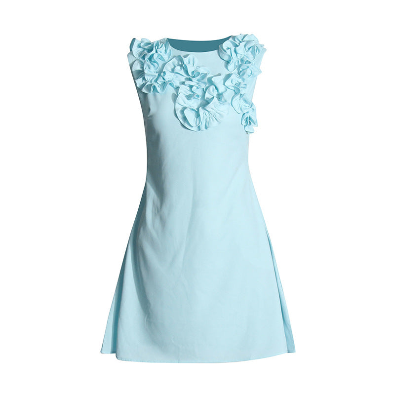 Temperament Fashion Style Dress 2025 New Design Feel Handmade Flowers Decorated Solid Color Sleeveless A Skirt