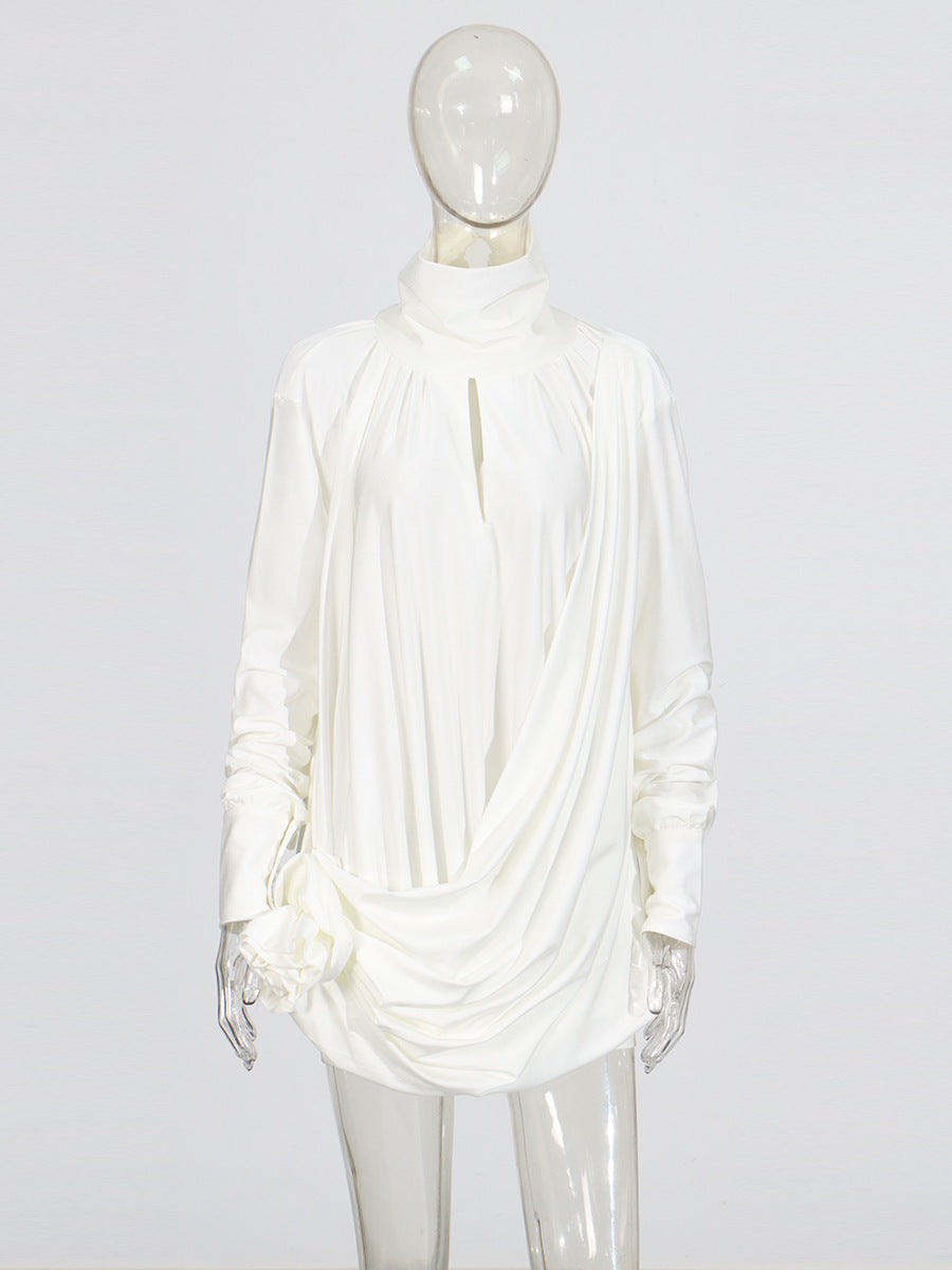 Temperament High-End Small Dress 2025 New Solid Color High-Necked Long-Sleeved Three-Dimensional Flowers Splicing Dress Dress Women's Summer