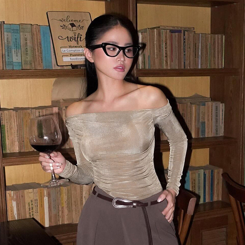 Trendy Brand Personality Shoulder Long-Sleeved Top 2025 Autumn New Women's Clothing DJPT