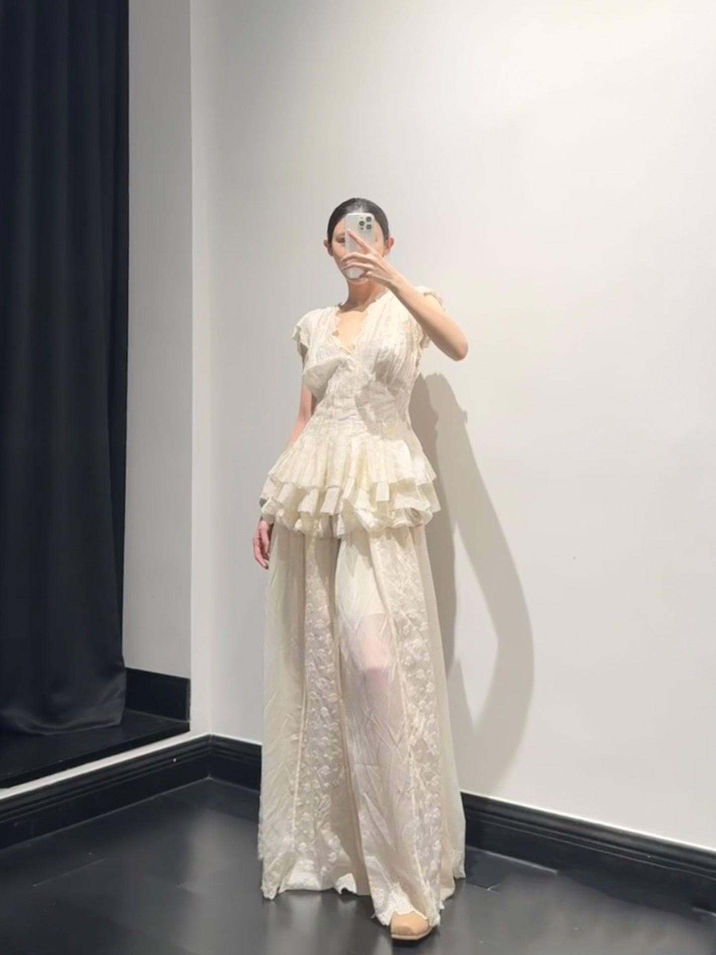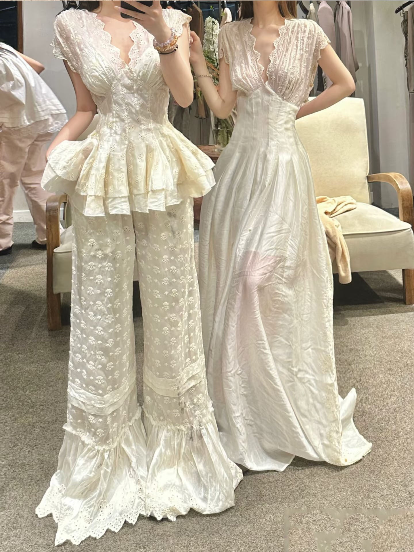 Version Of French Retro Embroidery Embroidered Silk Flax Temperament White Dress Temperament High-End Niche Set