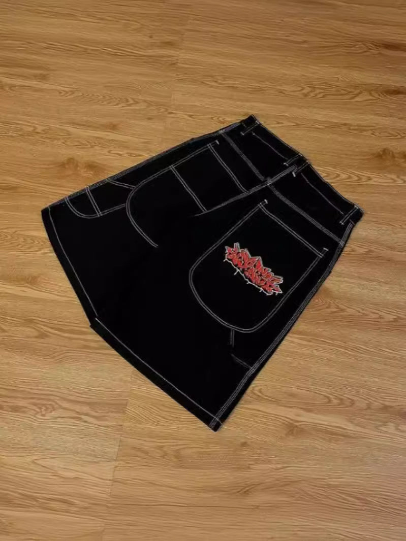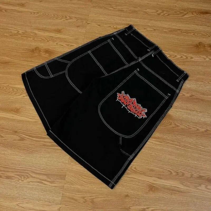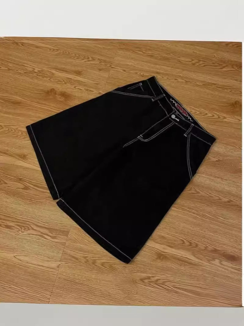 Vintage Loose Denim Shorts Men Harajuku Punk High-Waisted Denim Shorts Men's Loose Tide DJPT