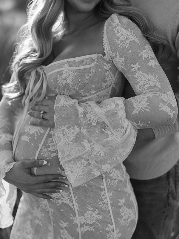 White Lace Corset Square Neck Flare Sleeve Off Shoulder Bodycon Elegant Cocktail Party Maternity Baby Shower Photoshoot Maxi Dress Maternity