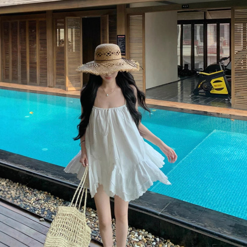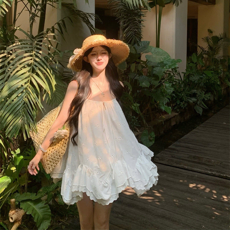 White Sling Dress Dress Female Summer Temperament Seaside Wind Fairy Irregular Doll Short Skirt
