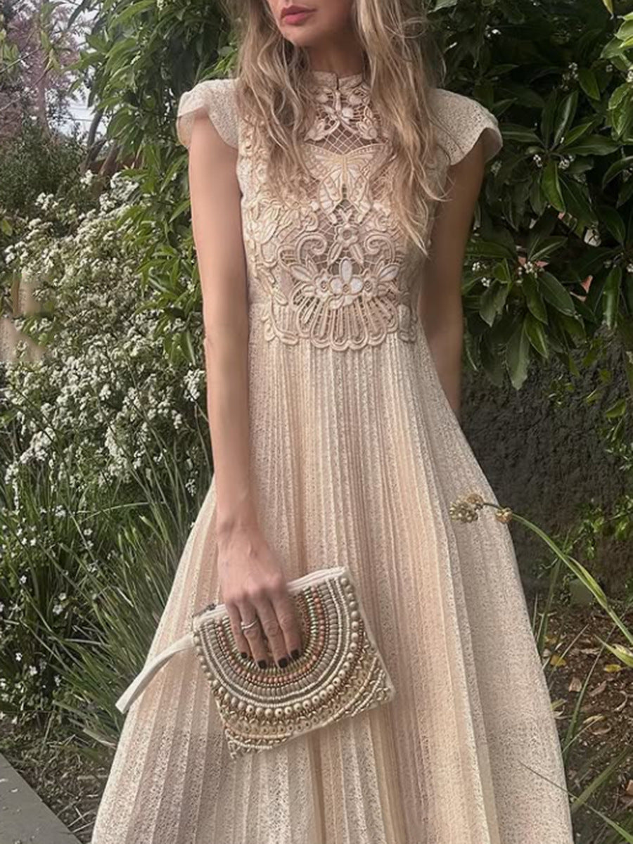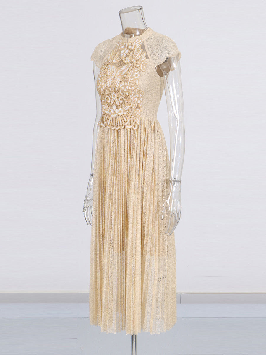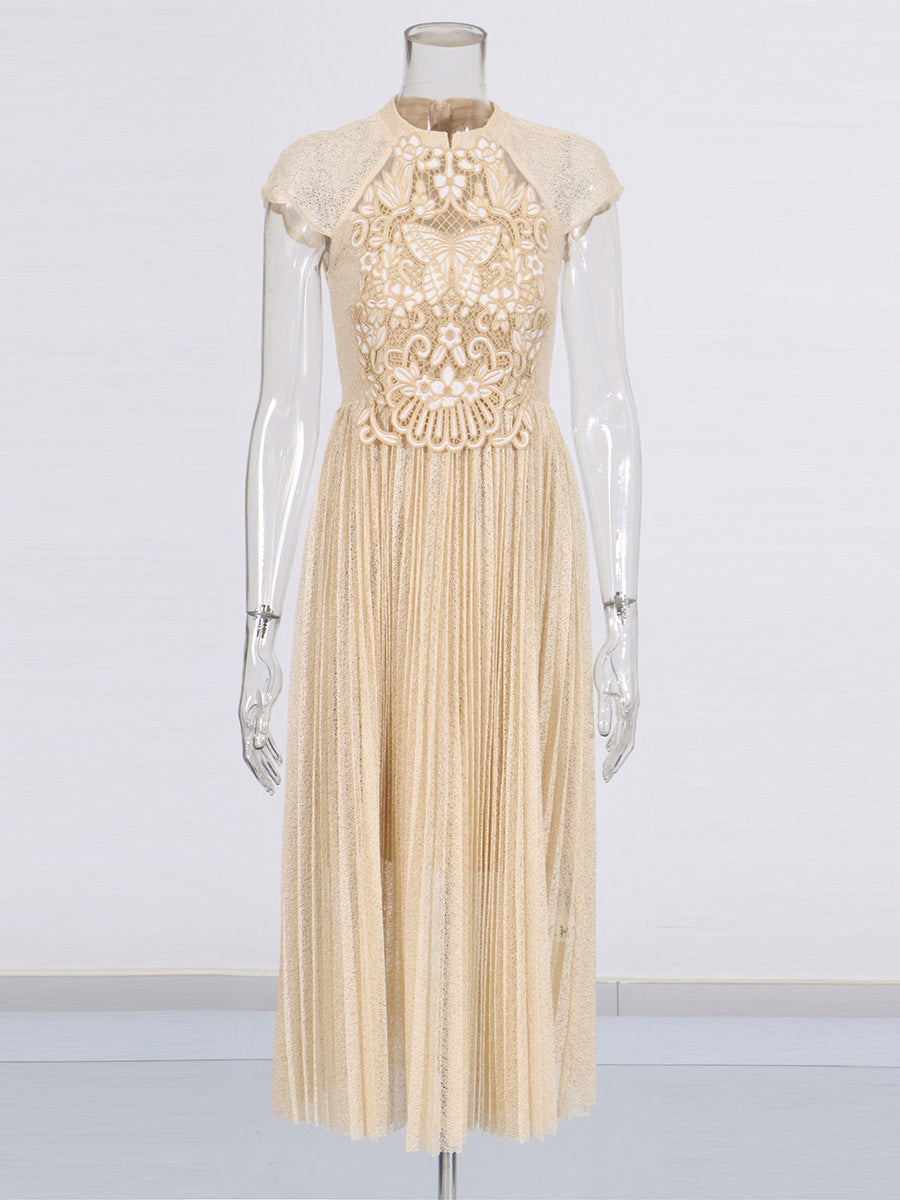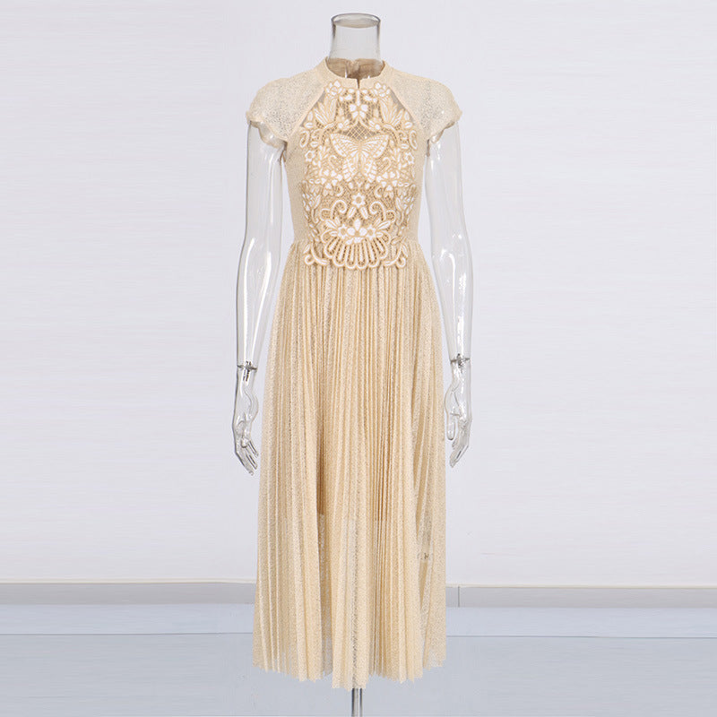 Wind Champagne Embroidered Dress Mid-Long Dress 2025 New Female Collar Bag Sleeve Design Waist Dress