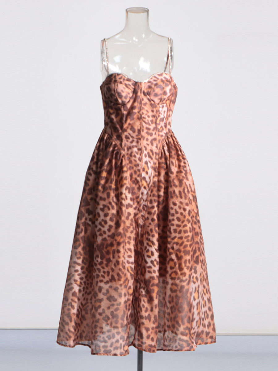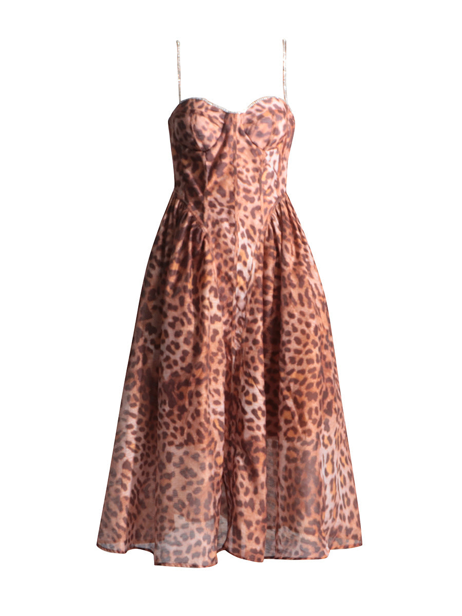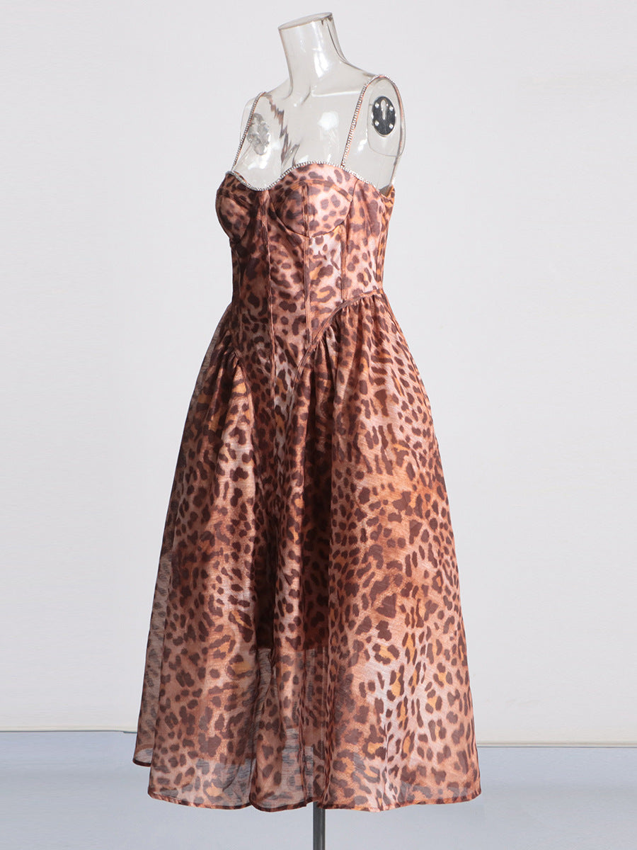 Wind Sling Skirt 2025 Summer New Sleeveless Chest Leopard Print Waist Dress Dress Dress Dress Woman
