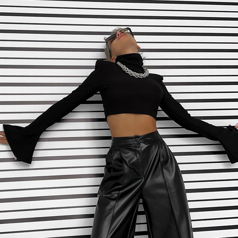 Women's Autumn And Winter New Clean Color Pile Collar Fashion Horn Sleeve Hottie Top DJPT