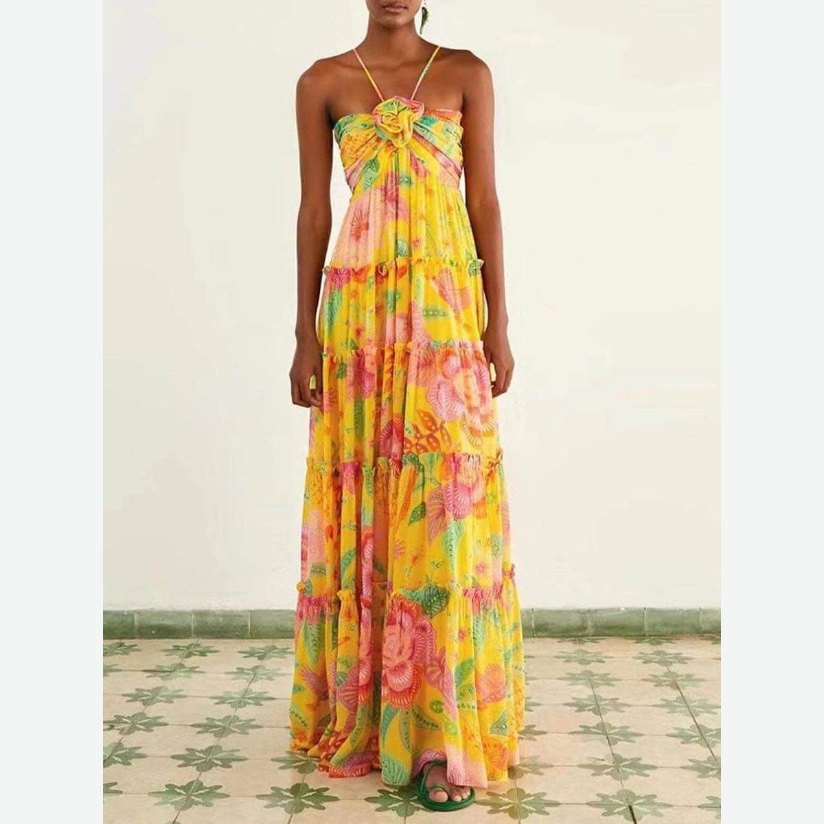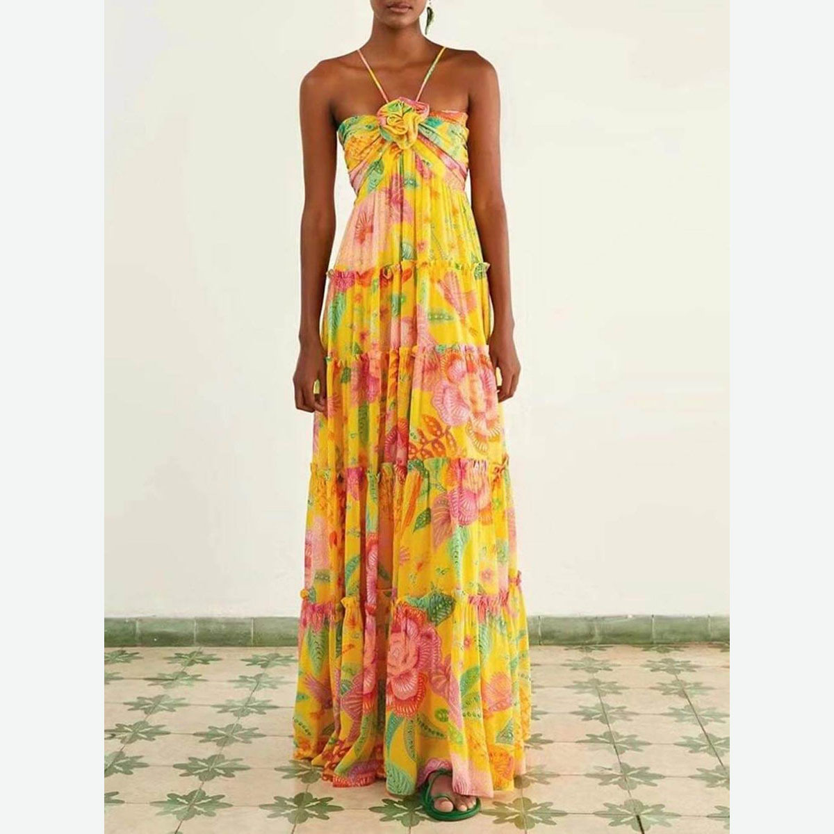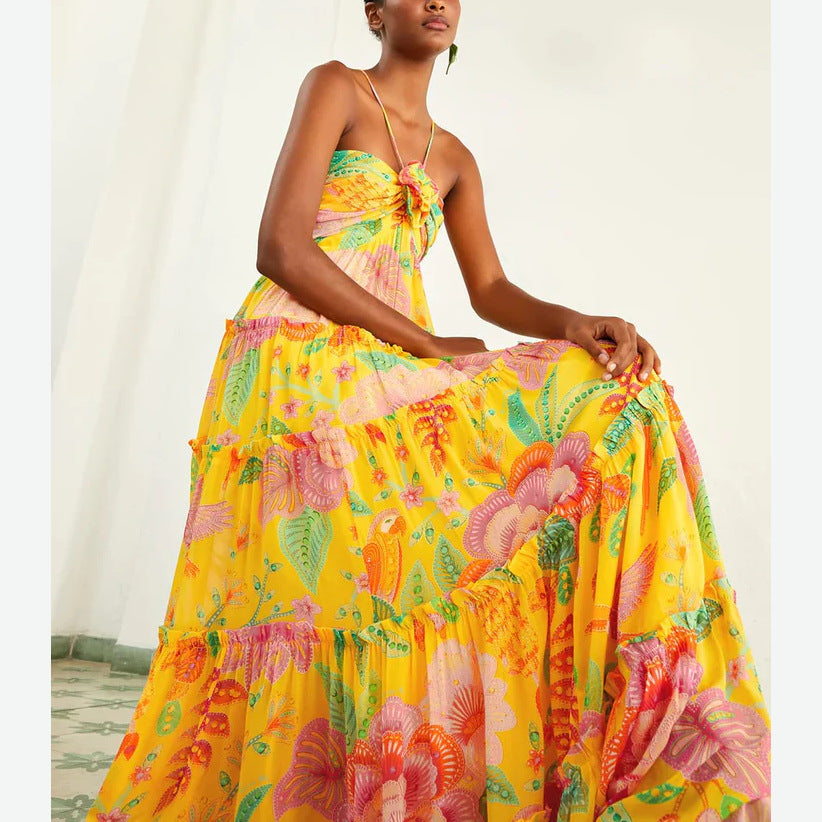 Women's New Fashion Print Sexy Hanging Neck Sleeveless Breast Loose Dress HZ0628