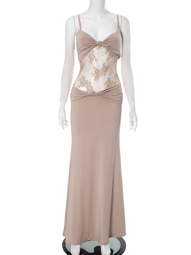 Women's Sleeveless Backs Folding Lace Splicing Dress DJPT