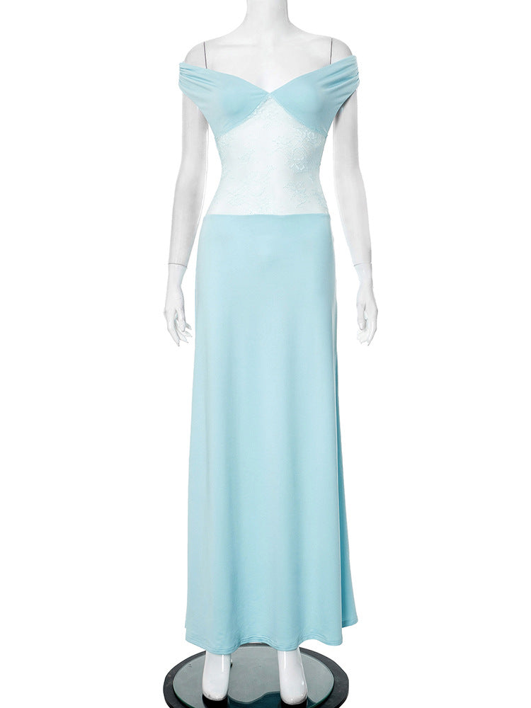 Women's Solid Color Bare Shoulder Lace Splicing A Word Dress DJPT
