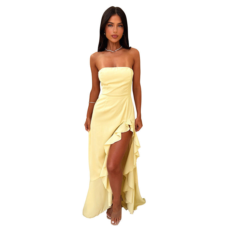 Women's Summer New Sexy Chest-Width-Back Strap Lotus Leaf-Side Dress DJPT